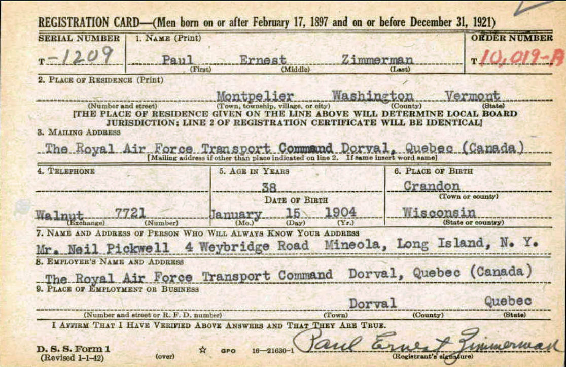 Harry LaGuardia, 45. arrived Liverpool 10 Aug 1940; Transferred to AtFero then US Eighth Air Force in Dec 1941.